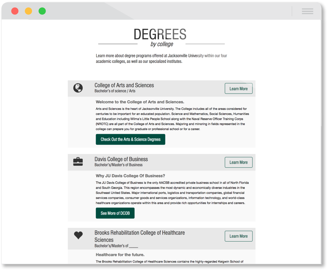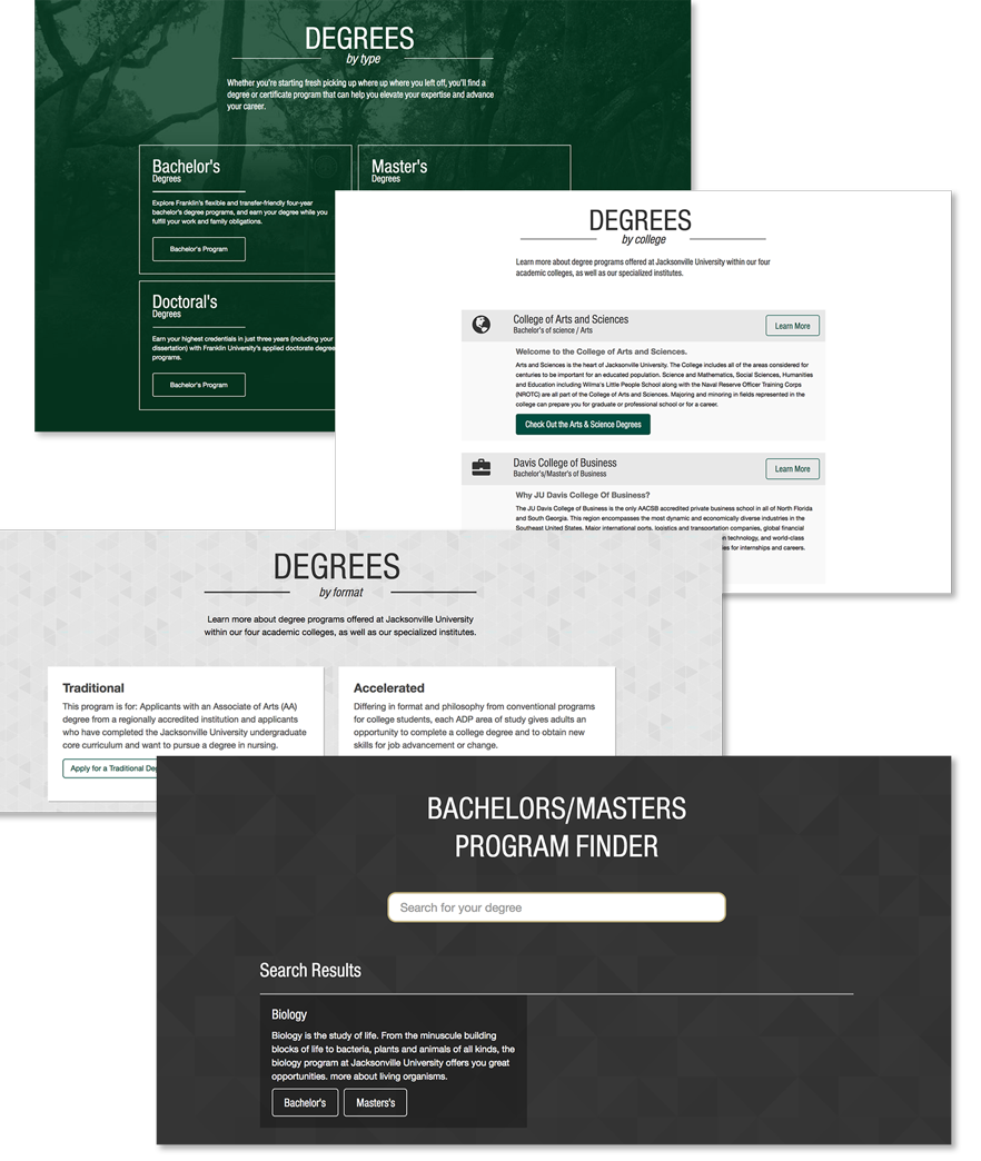 A microsite created to aid prospective students in finding their preferred degree.