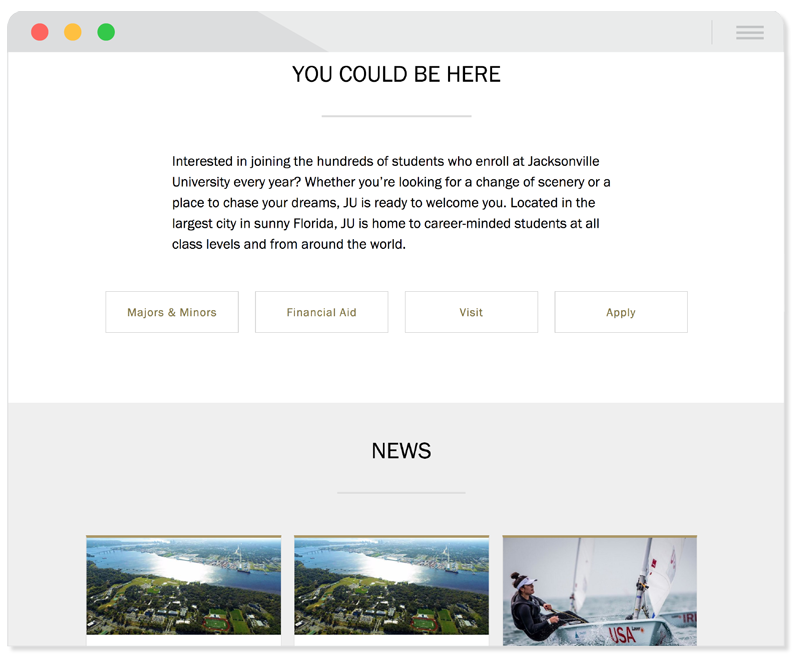 Approachable yet professional. The project's primary goal was creating a user friendly, information-architecture focused hub where prospective and current students could quickly find the content they sought. You can see how thing's have changed from the old site.